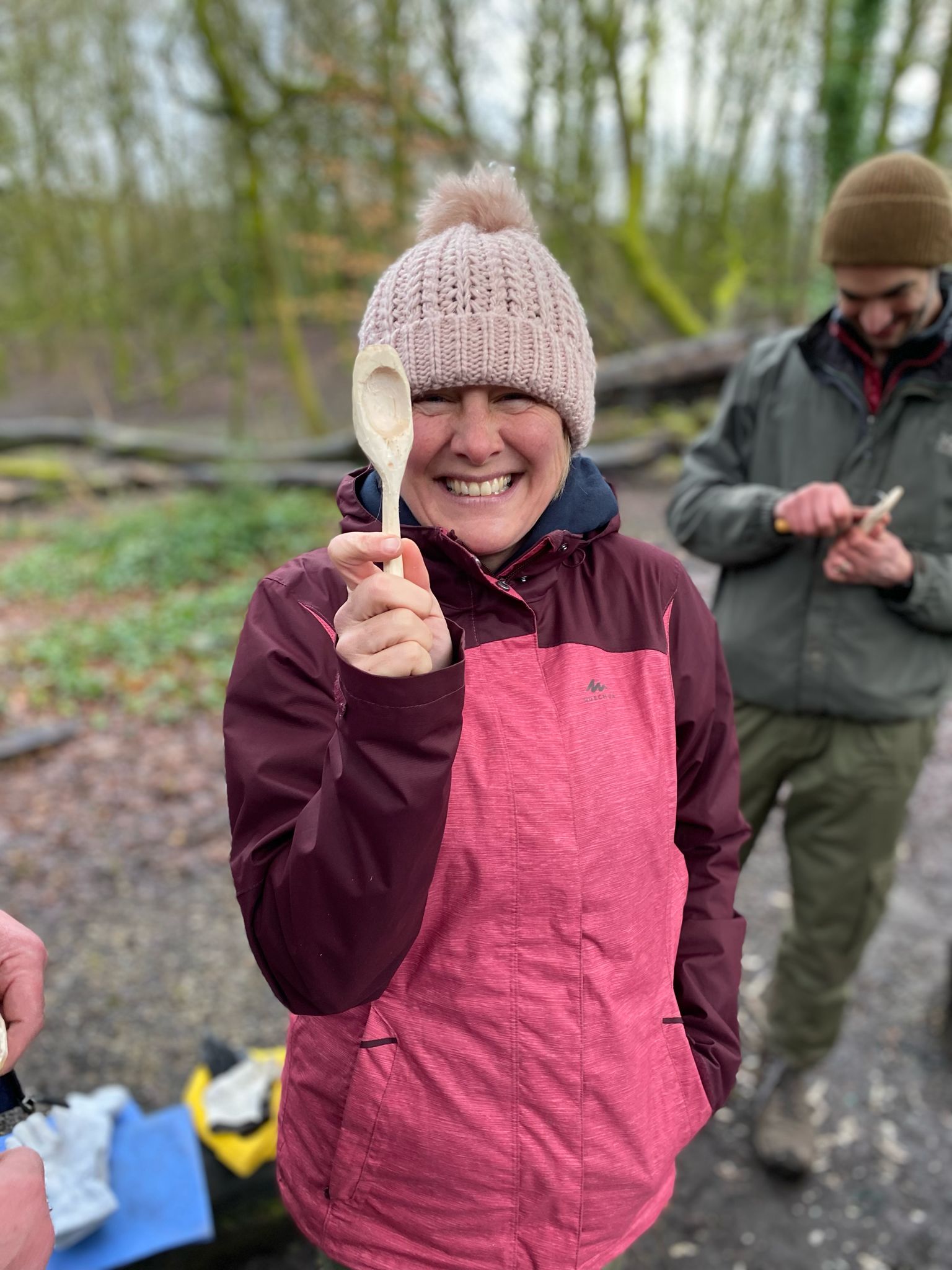 Spoon Carving with Forest School Leader and Speech and Language Therapist, Caspian