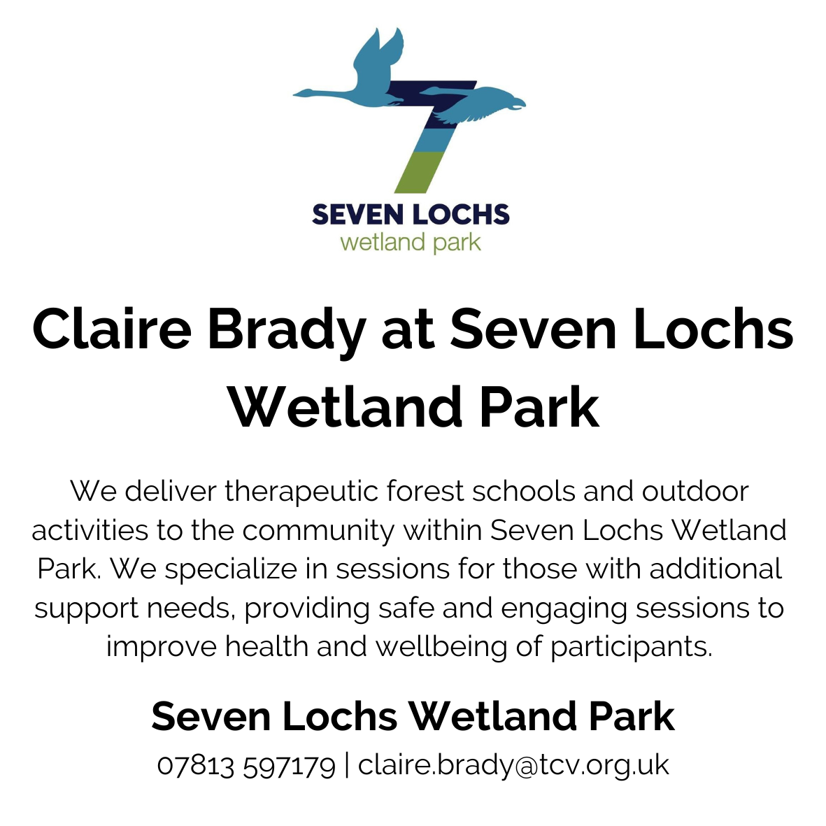 We deliver therapeutic forest schools and outdoor activities to the community within Seven Lochs Wetland Park. We specialize in sessions for those with additional support needs, providing safe and engaging sessions to improve health and wellbeing of participants.